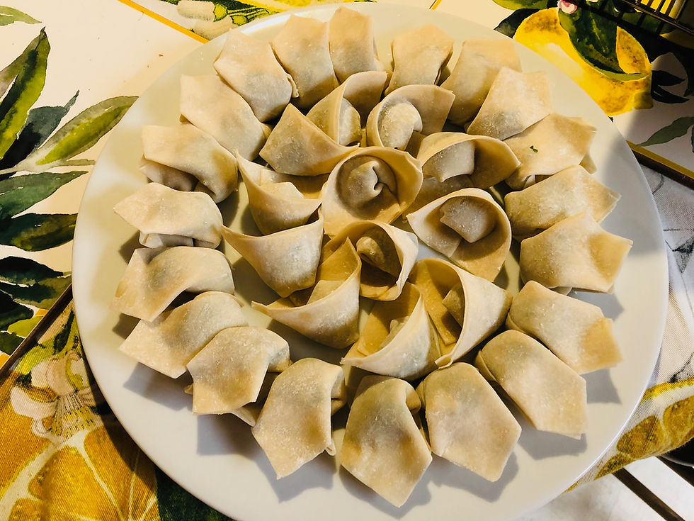Chop, chop, chop, chop, chop... then scraping noise with the cleaver across the large wooden chopping block, followed by another rhythmic chop, chop, chop, chop, chop. Grandma would look through the kitchen window, sometimes speak to herself, then methodically repeat the process of chopping ingredients. Already, there were bowls each filled with ingredients - the water chestnuts, the dried orange rinds, the ginger, and the ground sirloin. On the counter, there were large glass jars of fermented lemons and dried orange rinds, as if she was some cultinary scientist mixing in secret ingredients that would give her dishes such marvelous flavor. She would then mix all the ingredients from the bowls together, crack an egg or two, then place the bowl on a the kitchen roundtable - the same round table that hosted decades of family gatherings and conversations - and us grandkids would then look like human robots, methodically wrapping wontons and lining them up on the cookie sheet. While grandma would start boiling the water and making chicken broth soup, we would count the number of wontons (aka addition chart, wonton style) to make sure the whole family had enough. Wrapping a wonton was like artfully wrapping a pillow in a blanket, with egg whites dabbed onto the wrappers to act as "glue" to hold everything together. There were numerous wonton memories growing up. From birthdays to celebrations - wontons had a delightful role to play in grandma's kitchen of wonders.
